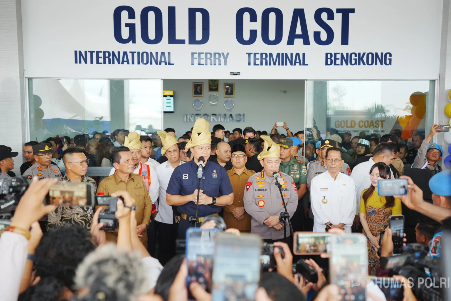 Kapolri Jenderal Listyo Sigit Prabowo saat menghadiri peresmian Gold Coast International Ferry Terminal di Batam, mengingatkan pentingnya pengawasan ketat untuk mencegah praktik ilegal.