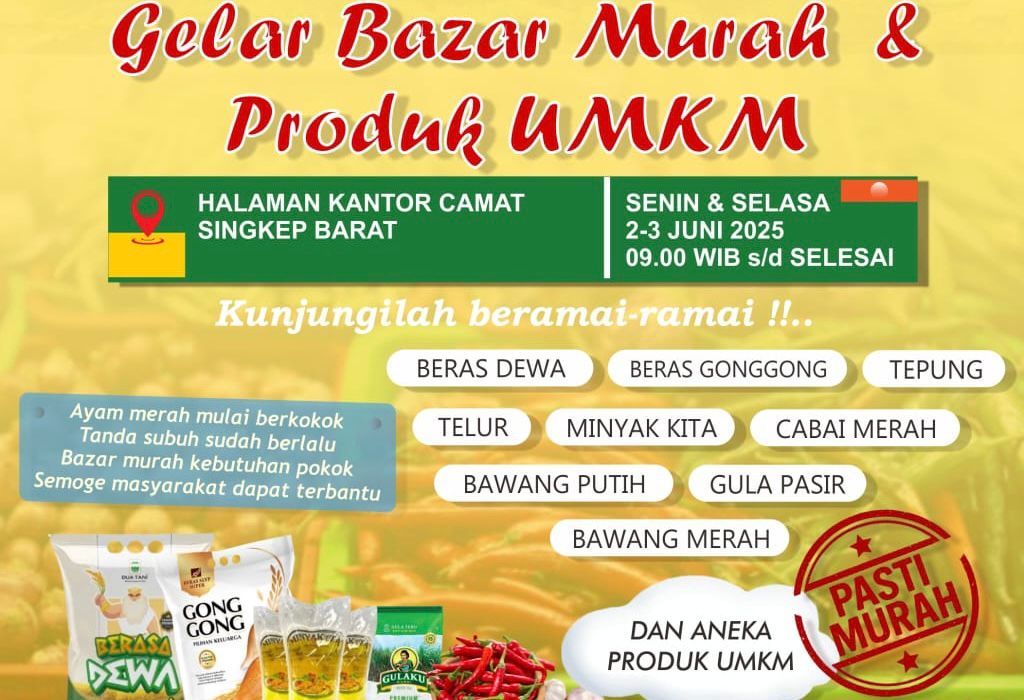Jadi, jangan lewatkan kesempatan ini! Segera kunjungi bazar murah di Singkep Barat pada 2-3 Juni 2025 dan nikmati berbagai penawaran harga sembako yang lebih hemat.