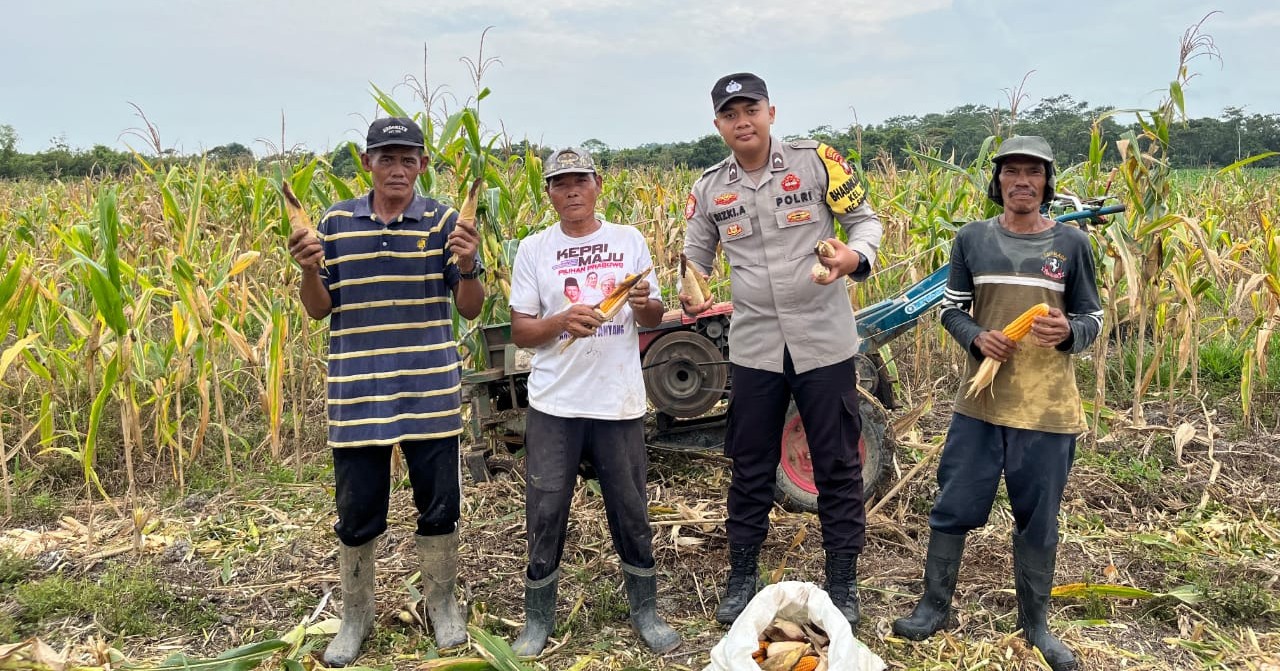 LINGGA TERKINI – Hamparan jagung menguning di Desa Bukit Belah, Kecamatan Singkep Barat, menjadi saksi kolaborasi antara polisi dan warga. Pada Sabtu (9/8/2025).