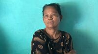 Aminah, ibunda Muhammad Sahri alias Aren, tampak menahan haru di rumahnya di Kampung Ciklatif, seraya berharap sang anak segera kembali dalam keadaan selamat