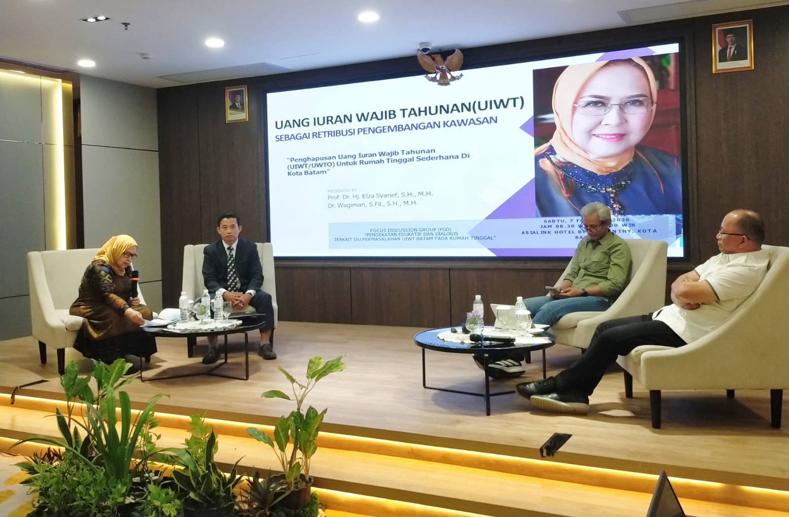 WhatsApp Image 2026-02-08 at 12.49.57 @Ruslan Published Sunday, 8 February 2026 Share Narasumber bersama moderator menyampaikan pandangan dan rekomendasi dalam FGD isu Uang Wajib Tahunan (UWT) rumah tinggal di Batam, sebagai upaya mendorong kebijakan yang lebih adil dan berpihak pada masyarakat.