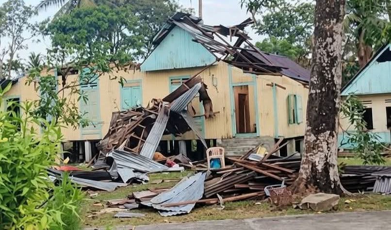 “Seng rumah sampai tersangkut di pohon,” ujarnya.